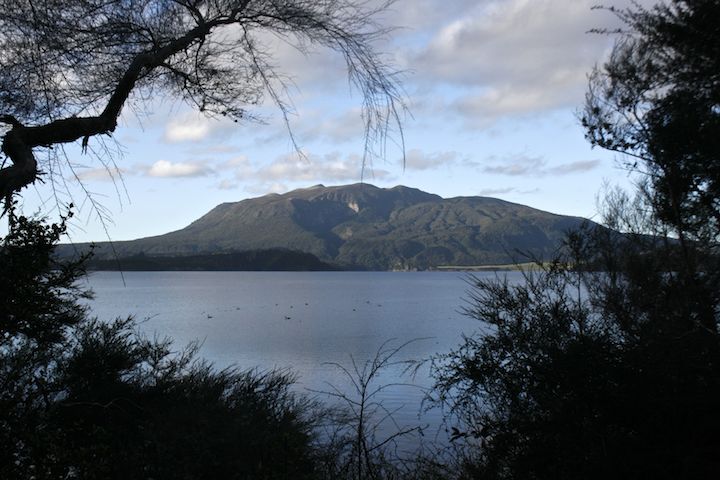 Mt. Tararewa volcano and Lake Rotomahana at bottom of Waimangu valley