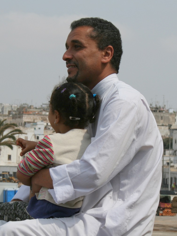 Father and daughter in cafe in the Moroccan city of Rabat.