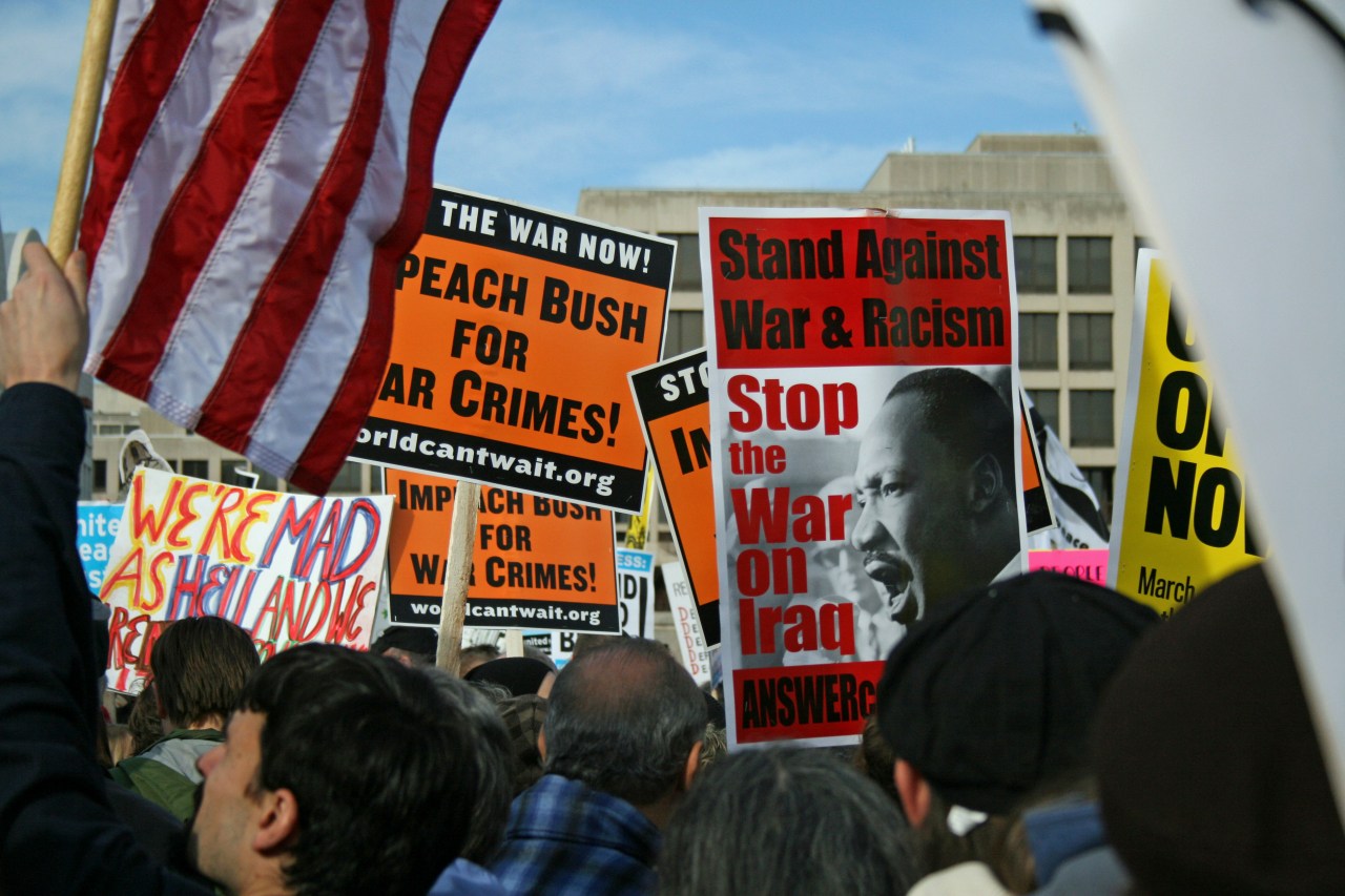 A back up at the start of the February 2007 anti-war protest in Washington DC made for interesting and occasionally dramatic photo opportunities. Protest organizers estimated roughly 100,000 attended the event.